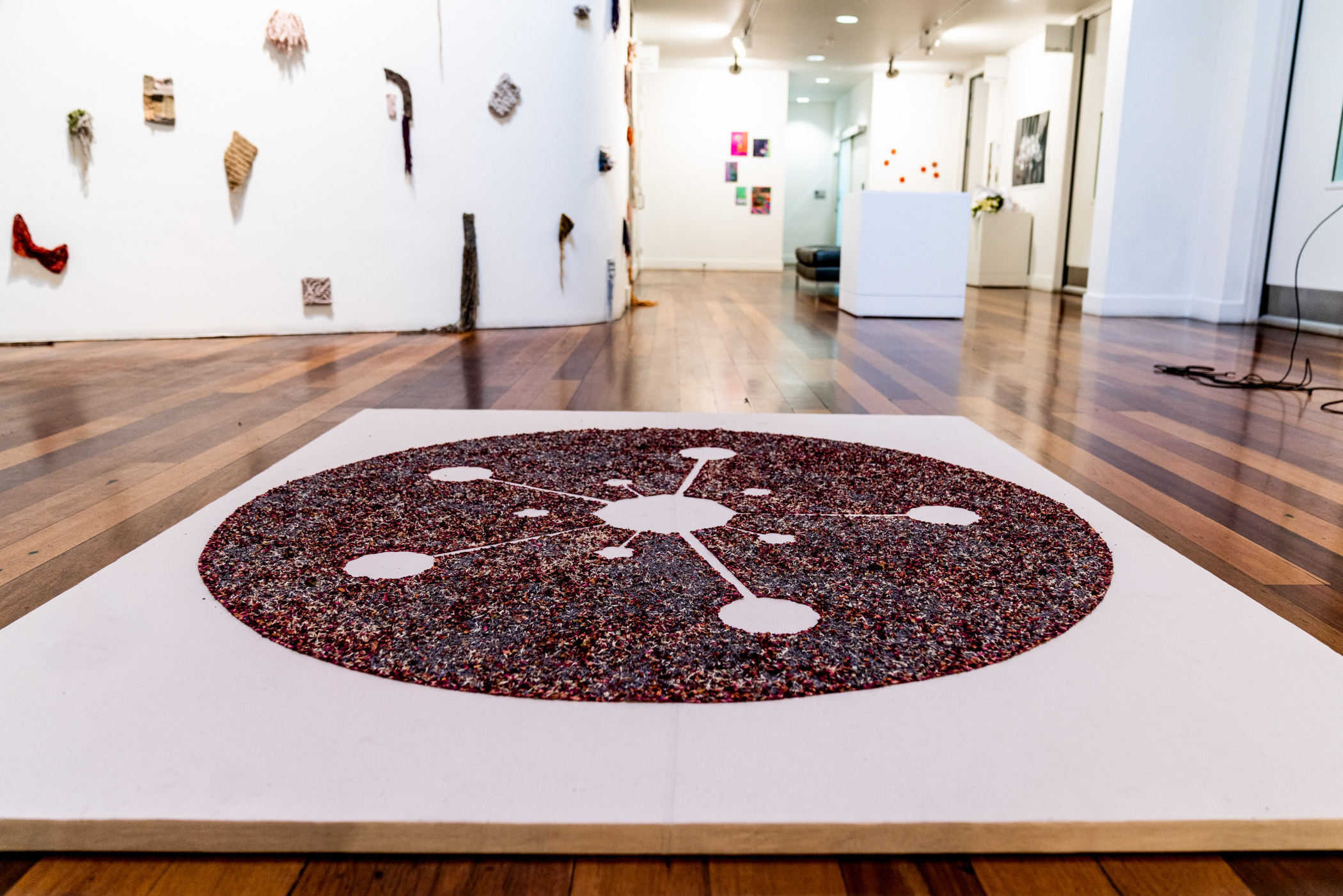 The rose chandelier, 2019, rose petals and lavender, exhibited in ‘In Out Nature’ curated by Sarah Rose, Broadhurst Gallery, Hazelhurst Gallery, Gymea, 2019